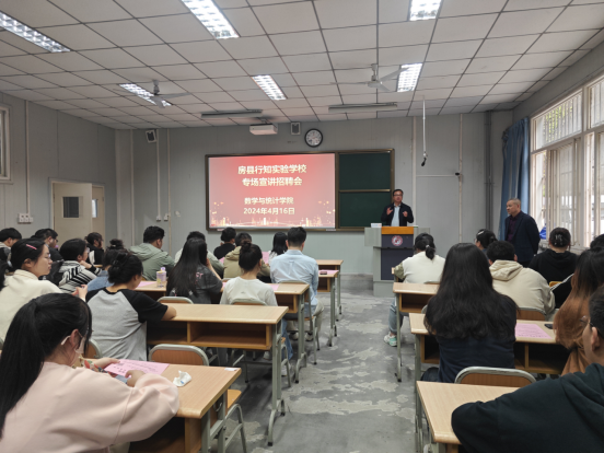 李向东介绍了公司的基本情况,房县行知实验公司是2019年房县招商引资的重大民生工程,是由县人民政府、县教育局和江苏教育集团联合打造的一所大型民办公助公司,是集小学、初中、高中教育于一体的12年一贯制公司。随后详细讲解了交通情况、教师薪资、福利待遇、奖金补助、食宿条件等,对工资待遇、政府住房补贴、公司提供的宿舍做了重点介绍。最后,李向东就同学们的提问进行了耐心、全面的解答。宣讲结束后,房县行知实验公司现场组织了笔试、面试。