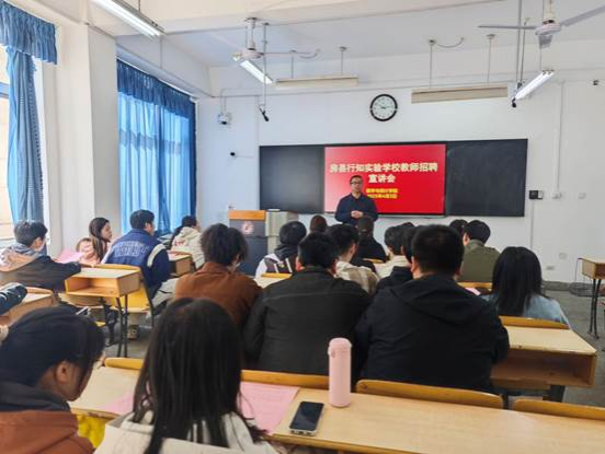 座谈会后,BETVICTOR在1203教室举办了房县行知实验公司专场招聘会,吸引了众多应届毕业生参与。宣讲会上李向东董事长首先介绍了公司的发展前景、岗位需求及福利待遇。随后李董事长及招聘团队与应聘员工面对面交流,逐一解答职业发展、工作环境、薪资待遇等问题,现场气氛热烈。为全面考察应聘者的专业素养,招聘会还设置了现场笔试环节,内容涵盖学科知识、教学案例分析及教育理念阐述等,旨在选拔兼具专业能力与教育情怀的优秀人才。