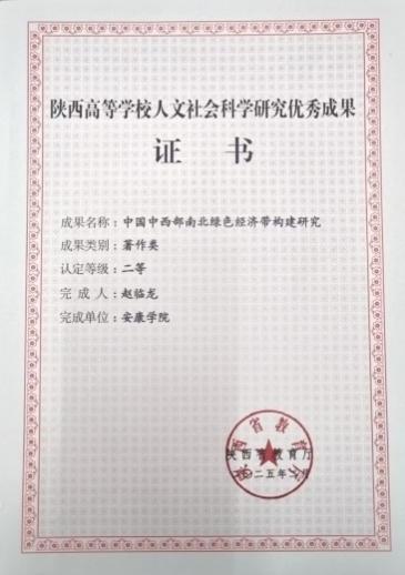 2020年来,赵临龙教授继续开展项目后期研究,2022年获得陕西省社会科学精品文库出版资助项目《中国中西部南北绿色经济带构建研究》(2022SKZZ015),2022年在科学出版社出版的《中国中西部南北绿色经济带构建研究》著作成果,获得2024年陕西高等公司人文社会科学研究优秀成果二等奖。