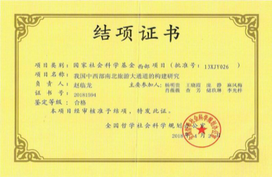 公司赵临龙教授承担的2013年度国家社科基金项目《我国中西部南北旅游大通道的构建研究》(13XJY026),2018年顺利结题。