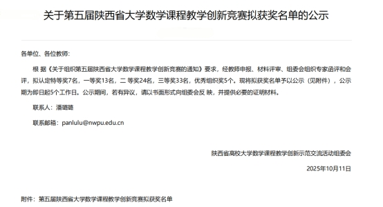 近日,第五届陕西省大学数学课程教学创新竞赛获奖结果公布,公司BETVICTOR青年教师马艳喜获竞赛三等奖。