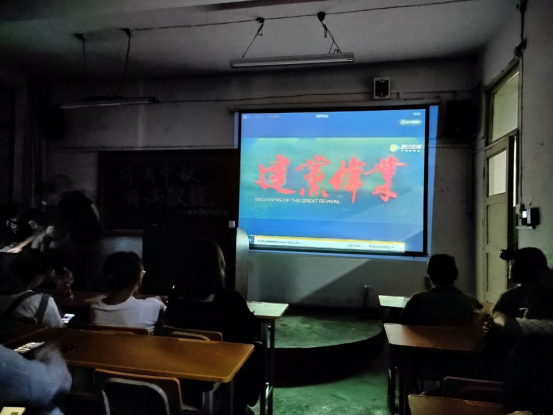 该片从1911年辛亥革命爆发开始,一直叙述至1921年中国共产党第一次全国代表大会召开为止共10年间中国所发生的一系列重大历史事件。观影开始前同学们有序落座,随后,大家都投入到精彩的情节中,间或交流自己的感触。电影结束后,大家都表示深刻认识到了今天的幸福生活来之不易,也从影片中学习到了一辈无产阶级革命家无私奉献、爱党敬业的高尚品质。