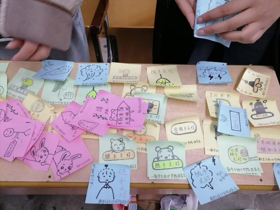 活动前期,团总支积极宣传,号召同学们主动参与活动。活动过程中,将志愿者们分成三个小组,分别开展创作。在每组小组长的带领下,大家积极讨论,发挥各自的才能,在便利贴上画上各种富有创意的图画,写上自己的留言或标语,号召大家一起节约能源。13日下午,三个小组分别前往一号楼,二号楼,六号楼贴卡片。在志愿者们的辛苦工作下,教学楼的每个教室的每个开关处,都展现出了一道节约能源的“光环”。