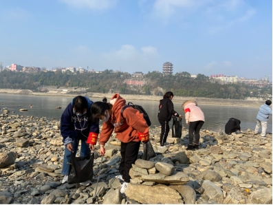 志愿者们步行来到汉江边,用火钳、垃圾袋等工具,捡拾江滩上的垃圾。看到有的垃圾被埋到沙土岩石中,也会用手把它取出来。江边风很大,却没有阻挡住同学们的热情,他们辛勤的背影构成了汉江边上一道美丽的风景线,并吸引了现场游玩的本地市民共同参与到活动中来。经过同学们和市民们一个多小时的辛勤劳动,汉江环境变得焕然一新,