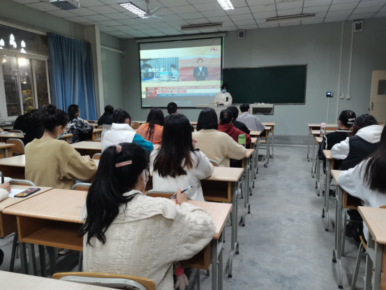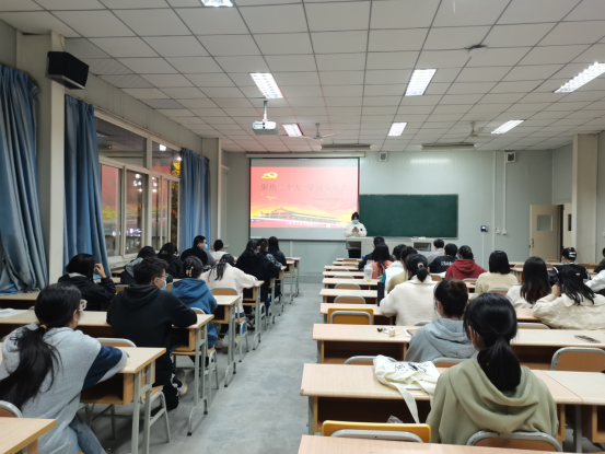 董婷瑜领学了二十大报告中“三个务必、三件大事、两个‘行’、两个‘结合’、六个必须坚持”等理论知识。随后参会人员观看了央视《二十大观察——中国的科教兴国战略》视频。同学们心潮澎湃,在交流发言环节表达了自己深切的感触。