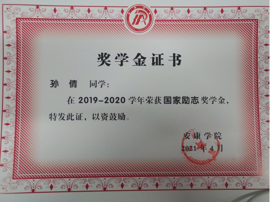 2019-2022年度连续三次获得“国家励志奖学金”