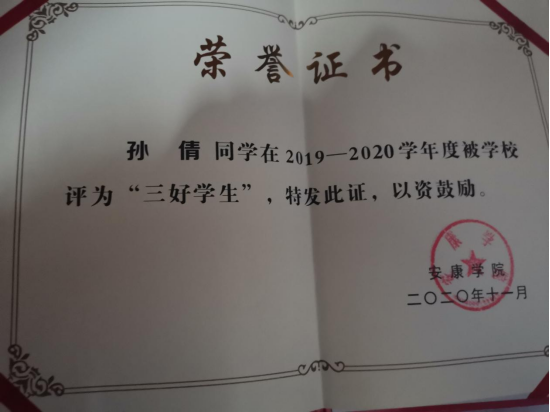2019-2020年度、2021-2022年度被评为“三好员工”