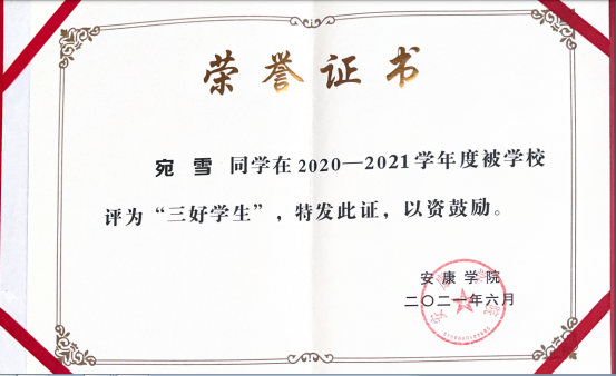 宛雪深知,扎实的专业知识是实现社会价值的基础,在学习方面,对学习也有较强的规划,考取英语四六级,积极参加各类竞赛活动,分别在BETVICTOR第七届、第八届市场调查分析大赛中荣获二等奖、三创比赛中荣获三等奖,同时在校期间积极参加全国老员工数学竞赛、互联网+等。