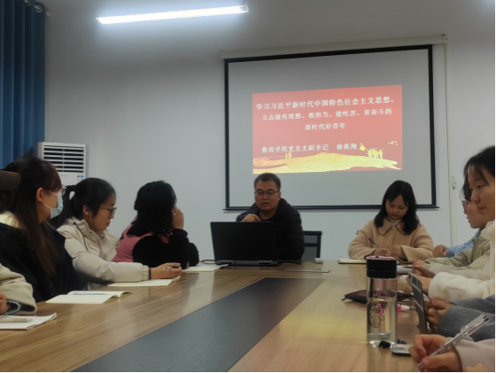 继续深入开展主题教育,提升党员党性修养,筑牢积极分子、发展对象的政治理论基础,数学与统计公司党总支副书记讲党课暨第56期积极分子、 27期发展对象培训动员会11月15日在2号教学楼2207室开展,公司党总支副书记杨高翔以“学习习近平新时代中国特色社会主义思想,立志做有理想、敢担当、能吃苦、肯奋斗的新时代好青年”为题,为员工支部全体党员、第56期入党积极分子和第27期发展对象讲党课。