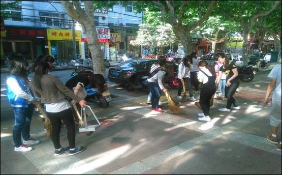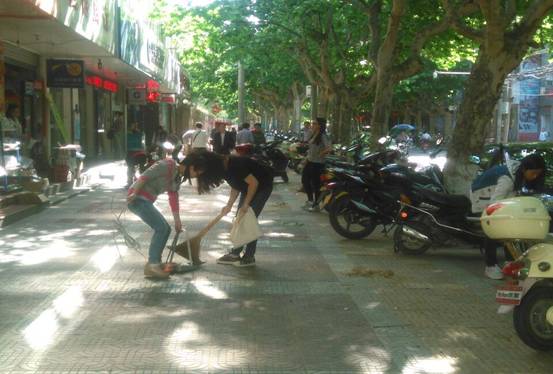 下午4点整,青年志愿者们拿着劳动工具,齐聚南校区育才路门口,在班长划分好清扫区域以后,青年志愿者们纷纷拿起扫帚在自己的区域里开始清扫,投入到热火朝天的清扫活动中,对于有些很难清扫的死角,青年志愿者们用各种方法努力清洁。在大家全力清扫了一个小时以后,公司门前的街道变得干干净净,让许多经过的市民也纷纷对志愿者们点头微笑,点上一个赞。