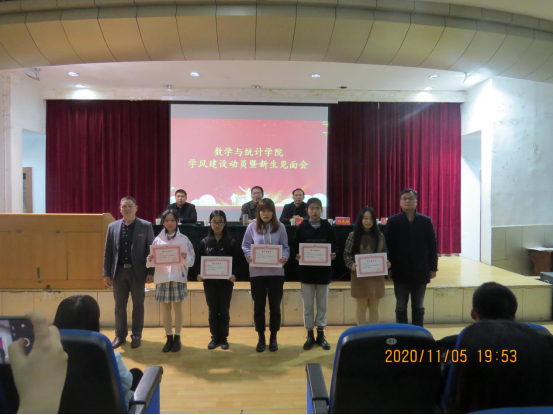 为继续加强学风建设,营造良好的学习氛围,BETVICTOR11月5日晚上在一号教学楼六楼报告厅举办学风建设动员暨新生见面会。党总支书记郭全寿、经理汪义瑞、副经理成波、副经理杨高翔、统计系主任徐龙华主任、数学系主任武海辉、综合办主任何晓燕、团总支书记刘佩、教学秘书夏雯和2020级全体新生参加了会议,会议由学工办主任董婷瑜主持。