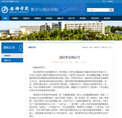 ——发出一封诚信倡议书。公司向全体员工发出了一份诚信考试倡议书,“诚实守信是一种道义,是一种准则,是一种责任。”倡议书号召同学们树立社会个人诚信形象、家庭个人诚信形象和公司个人诚信形象,在期末考试中、人生的答卷上为自己的诚信赢得满分。