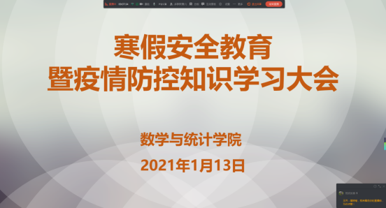为传达公司关于疫情防控最新工作要求,引导员工自觉遵守公司规定,进一步加强对员工的寒假安全教育,加强员工的防范意识,2021年1月13日晚,BETVICTOR召开寒假安全教育暨疫情防控知识学习大会,本次会议通过钉钉群召开,​BETVICTOR全体员工690余人参会,会议由学工办主任董婷瑜主持。