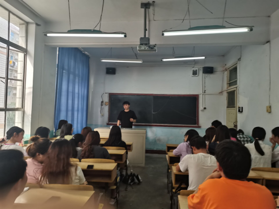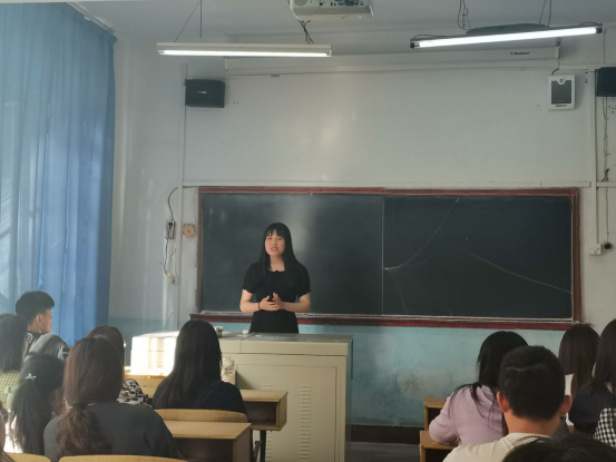 图为张攀欣向低年级员工分享考研经验