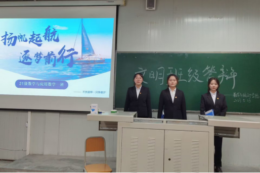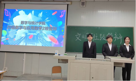 本次评选活动共有12个班级参与了展示每个班级都有自己的故事,各个班级分别从班级情况介绍、学风建设、第二课堂活动参与、班级公约等方面进行了图文并茂的展示,从他们的展示中我们看到了各班有他们独特的一面,也有他们独特的优势。通过评选,最后2021级数学与应用数学1班和2020级数学与应用数学2班在12个班级中脱颖而出。最后,郭全寿对此次活动进行了点评,并充分肯定了举办该活动的意义,希望同学们都能刻苦向上,为自己的班级贡献自己的一份力量。