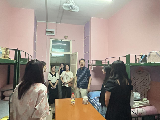 走访过程中,老师们亲切地和新同学交谈,了解同学们来校之后的感受,询问他们衣食住行、生活是否习惯等方面的问题同时嘱咐同学们在大学中要学会自主学习、和舍友之间要相互帮助相互理解,共同营造良好的宿舍环境和融洽的宿舍关系。
