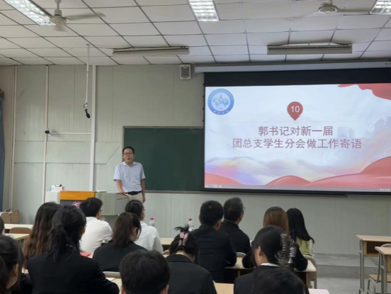最后,郭全寿为新一届团总支员工分会做工作寄语。郭全寿希望作为员工会干部,首先应该多做实事,有担当和责任感;还强调作为员工会干部应该全心全意为同学服务,把握好“名”和“利”;最后郭全寿希望员工会干部不仅要做好员工会工作分内之事,在学习上也不能放松,争取做一个全面发展的好青年。