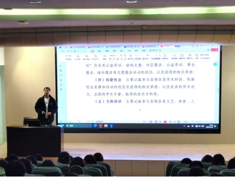 团总支书记马勇,详细介绍了公司的第二课堂学分的分布与可获得学分的各类活动,表明第二课堂学分制的实施旨在培养具有创新精神、实践能力和社会责任感的高素质复合型人才。鼓励大家自主选择、积极参与,实现知识学习与实践能力培养的有机融合,促进自身的全面发展。