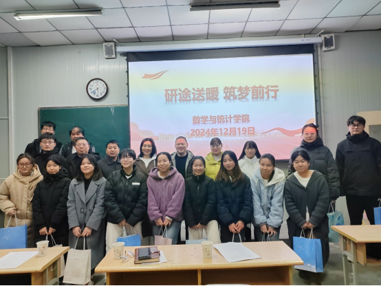 与会领导、老师向毕业班考研员工发放了加油包、暖冬饺子券,祝愿同学们轻装上阵、一战成硕。