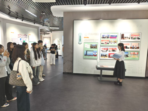 活动中,校史馆讲解员结合馆内的文字史料、老照片、实物展品等,从公司的创办背景、发展变迁、人才培养等方面,为同学们生动讲述了公司的历史沿革。“同心逐梦寄语未来”电子签名区互动环节中,同学们纷纷留下参观感悟,用数字笔迹传递对校史的共鸣与祝福。活动尾声,新生辅导员邹珊在“弦歌不辍 奋楫笃行”主题展区前,结合党建引领、人才培养成果勉励大家:“校史里的每步发展都是前辈拼搏的印记,要从历史中汲取智慧,传承‘笃学、尚行、励志、创新’的校风。”