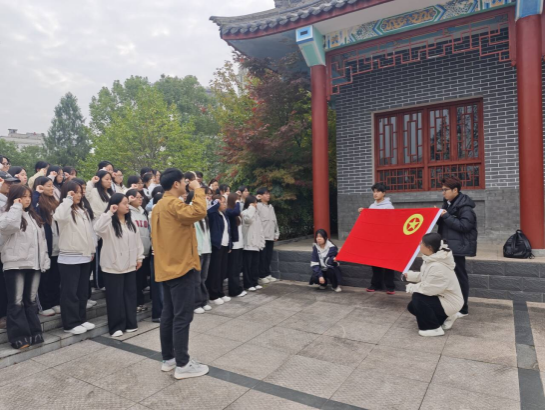 团课结束后,面对鲜艳的团旗,全体团员青年在马老师的带领下高举右拳,重温入团誓词。“我志愿加入中国共产主义青年团……”铿锵有力的誓言在陵园上空回荡,表达了团员青年们继承先烈遗志、恪守团员职责、为共产主义事业不懈奋斗的坚定决心。