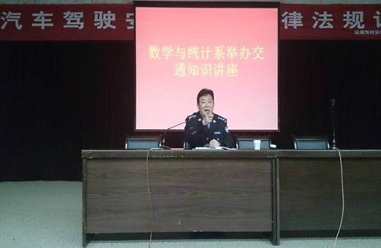 为进一步贯彻落实公司团委以“怀揣中国梦,志愿伴我行”为主题的学雷锋活动月安排,2014年3月20日数学与统计系在图书馆报告厅举办了以“争做雷锋人,安全伴我行”为主题的交通知识讲座,系团总支邀请安康市汉滨区交警大队江树国警官为2013级全体员工作了一场精彩的讲座。