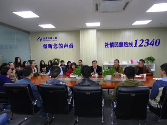 首先,安康市统计局总统计师陶勇俊欢迎统计专业员工到统计局进行专业见习,介绍了安康市统计局社情民意调查中心、汉滨区统计局的基本情况,并对员工提出“服从统计局见习单位安排、严格遵守工作纪律、珍惜专业见习机会”三点要求,再三强调专业见习的重要性。随后,社情民意调查中心王主任、汉滨区统计局邢科长对本次专业见习做了具体安排。最后,汪经理代表BETVICTOR感谢统计局对公司统计学专业见习工作的大力支持,希望同学们认真对待本次专业见习,珍惜这次专业见习的宝贵机会,严格要求自己,及时完成见习单位安排的各项任务,通过BETVICTOR-安康市统计局统计学实践教育基地这个良好平台,培养良好的市场调查分析与统计实践能力。辅导员师老师要求同学们服从统计局的安排,注意交通安全。会后,带队教师杜贵春、徐龙华分别带领员工到安康市统计局社情民意调查中心、汉滨区统计局开始了为期11周的专业见习活动。