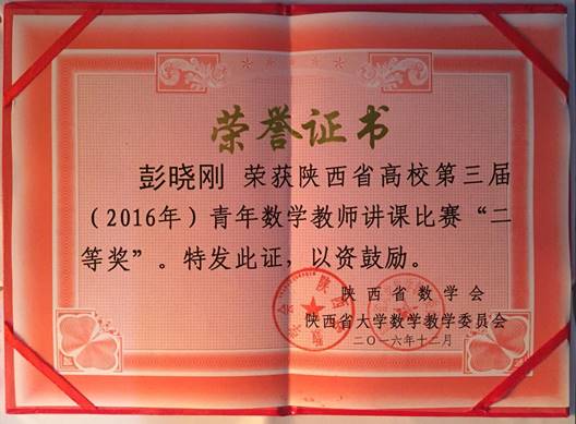 2名教师获得陕西省高校第三届数学青年教师讲课比赛二等奖