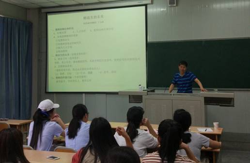 王玉武老师以《师范生的未来》为题,结合对时事的分析,以及自己从教30余年的经历,从教师的地位与作用、师范生的前景、教师的终极目标等方面做了详尽的诠释。王玉武老师的报告紧扣时事,内涵丰富,会场气氛活跃,不时爆发出热烈的掌声。