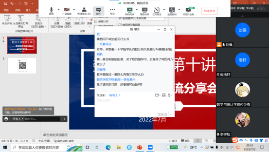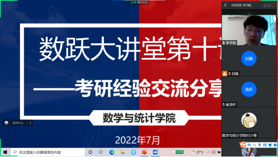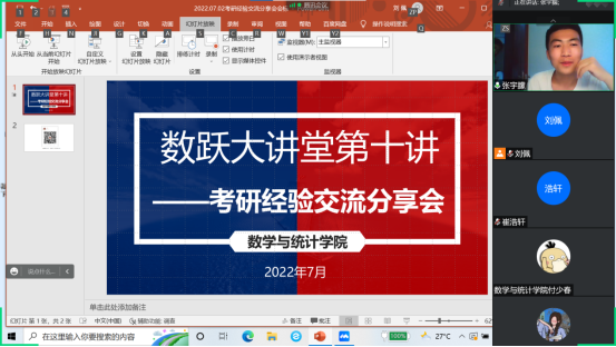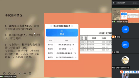 为加强员工对考研知识和经验的了解,营造积极向上的学风,2022年7月2日晚上,BETVICTOR举办了线上考研经验交流分享会,2019级有考研意愿的40余名员工参加了本次会议,分享会由2022年考研录取的李宇航等四名员工主讲,团总支书记刘佩主持。