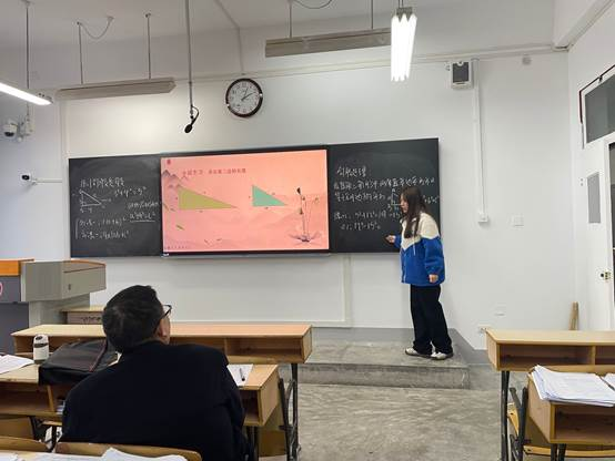 数学与应用数学师范生参赛选手在1303教室进行了公司产品能力展示。本次大赛由汉滨初级中学特级教师张朝清、系教学督导王秋芬、卓越师范班班主任魏春强、统计系系主任杜贵春、数学系系主任王芮婕五位老师担任评委,从粉笔字书写、教学设计及模拟授课等方面对参赛员工进行打分。