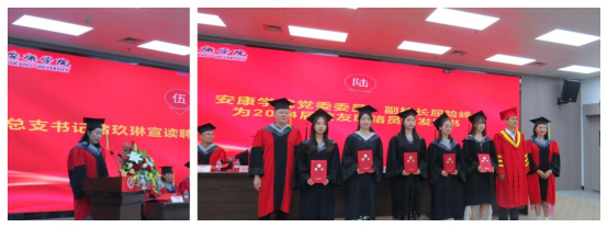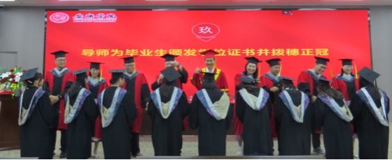 学位授予仪式在公司老师、学弟学妹的一声声祝福中正式开始。拨穗正冠、颁发证书、握手合影,校、院领导和导师们“一对一”为毕业生授学位,送祝福……,这些充满仪式感和意义非凡的场景,传递着领导和导师们对毕业生的肯定与鼓励,引导着他们在未来的道路上拼搏、奋进,创造精彩人生,标志学子们自此正式开启新的人生篇章。