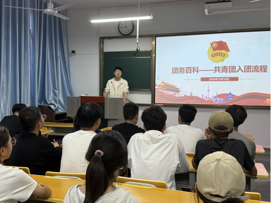 团总支书记马勇首先对共青团的历史背景、宗旨使命以及在当前社会中的重要地位进行了简要介绍,并鼓励广大青年学子积极向团组织靠拢,努力学习团的基本知识,提高自身综合素质,为加入团组织做好充分准备。随后,团总支副书记何俊言结合身边同学的具体案例生动形象地阐述了入团流程中的各个环节和注意事项,让同学们对入团流程有了更加清晰的认识和了解。