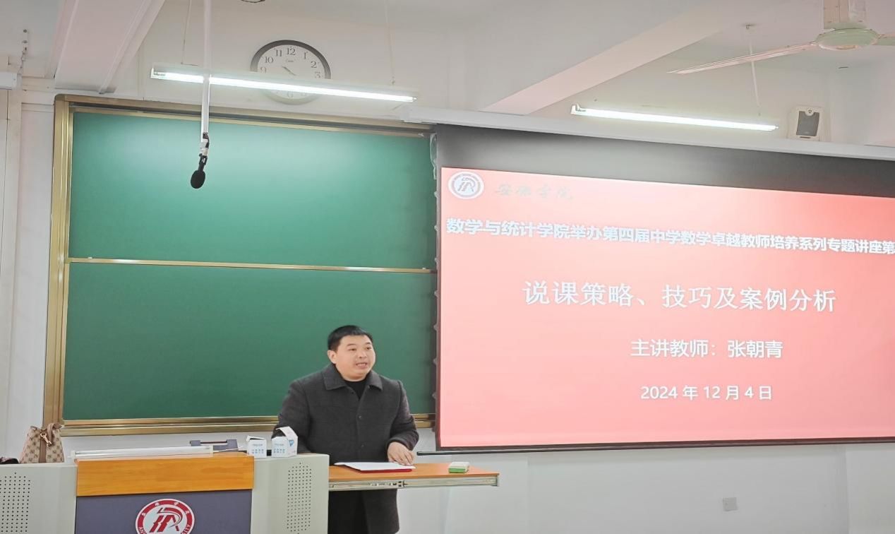 2024年12月4日,BETVICTOR在江南校区1510教室隆重举办了第四届中学数学卓越教师培养系列专题讲座第一讲。本次讲座以“说课策略、技巧及案例分析”为主题,由汉滨初级中学正高级教师、陕西省特级教师、省校本教研先进个人、陕西省首批中小学教学名师张朝青担任主讲人。第四届中学数学卓越教师培养班全体员工参加了本次讲座,BETVICTOR副经理徐龙华、卓越教师培养班班主任鲁星星出席此次讲座,讲座由鲁星星主持。