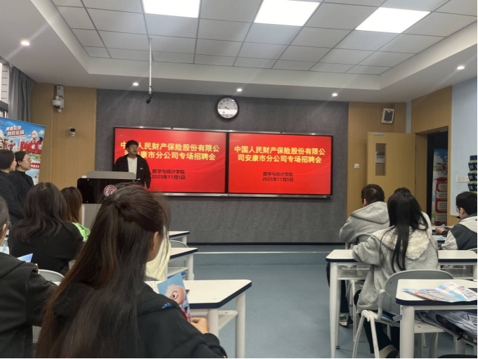 招聘会伊始,公司毕业班辅导员马勇老师代表公司对中国人民财产保险股份有限公司安康市分公司一行的到来表示热烈欢迎。寄语2026届毕业生们,当前正值求职择业的黄金时期,希望大家能认清就业形势,转变就业观念,珍惜公司精心组织的每一次“送岗上门”机会,主动出击,积极应聘,争取早日找到心仪的工作岗位。