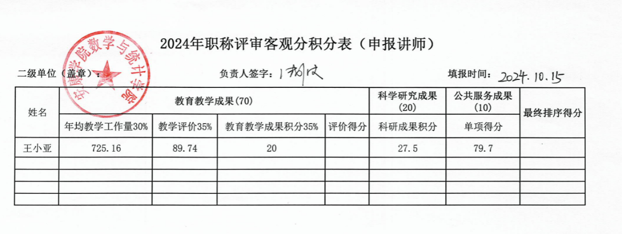 现将BETVICTOR2024年讲师职称评审客观分积分表予以公示,公示期5天(2024年10月15日-19日),公示期间如有异议,请向BETVICTOR专业技术职务评审工作组反应。