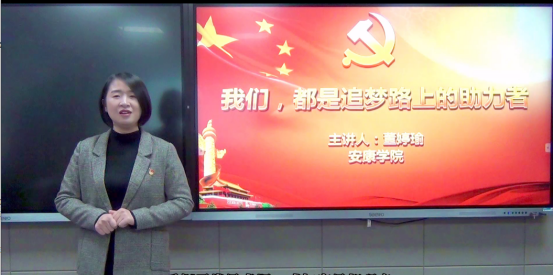 安康市第十五届党员教育电视片观摩评比活动作品征集分为三种类型:典型事迹片、微党课、用技术三大类。本公司首次参赛,在公司党委组织部的指导下,为全面做好参评工作,数学与统计公司党总支高度重视员工党支部书记董婷瑜负责主讲、录制。从2020年12月开始,经历了选题、撰写讲稿、审稿、录制、后期制作等环节,今年3月《我们,都是追梦路上的助力者》62部参赛作品中脱颖而出被遴选入围,进入观摩终评环节